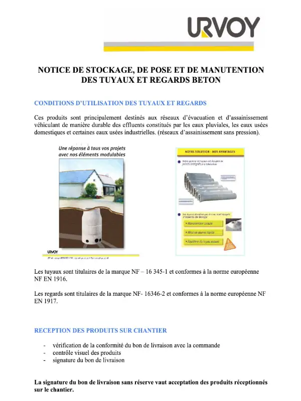 NOTICE DE STOCKAGE DES TUYAUX ET REGARDS BETON